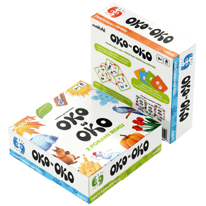 „Oko w Oko z Porami Roku” to gra, która przenosi graczy w barwną podróż przez cztery pory roku – pełną kolorów, symboli i niespodzianek! Kto potrafi rozpoznać sporty zimowe, jesienne owoce czy wiosenne kwiaty? W tej dynamicznej zabawie każda karta – niezależnie od pory roku – ma tylko jeden wspólny obrazek z inną. Szybkość i błyskawiczny refleks to klucz do sukcesu! Gra pomaga dzieciom uporządkować wiedzę o tym, co dzieje się w poszczególnych porach roku i czym się one charakteryzują, jednocześnie rozwijając spostrzegawczość, pozwalając poznać sezonowe zjawiska przyrodnicze i odkryć, jak zmienia się świat w rytmie pór roku. W zestawie znajduje się 84 pięknie ilustrowanych kart oraz słowniczek przyrodniczy, który sprawia, że przygoda staje się jeszcze ciekawsza. Dodatkowo cztery tryby rozgrywki – od spokojnej nauki po emocjonujące pojedynki na refleks. Wystarczy zgarnąć punkt, zanim zrobi to ktoś inny! Każda runda to podróż przez świat przyrody, pełna śmiechu, rywalizacji i niespodzianek.